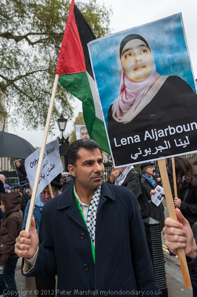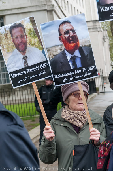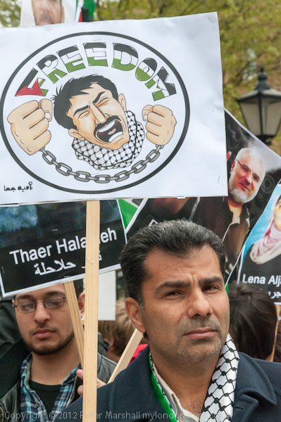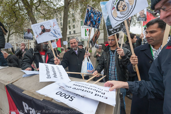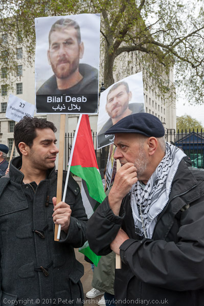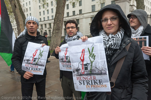 Protesters held placards with pictures of some of the 1200 or more prisoners on hunger strike