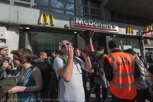 where a small group of protesters had managed to enter the Pizza Hut, and were ejected as we arrived