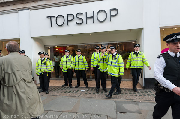 Police were guarding Topshop on the Strand, but the protesters had taken a wrong turning and were actually