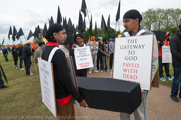 The Gateway to God Paved with Dead Bodies. Coffins and black flags