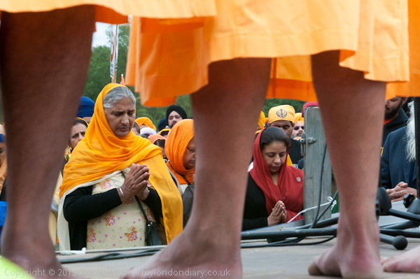 Khalsa including the Panj Pyare on the platform in bare feet before the march