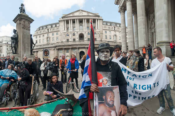 Benny Wenda and others listening to the speeches in front of the Bank of England