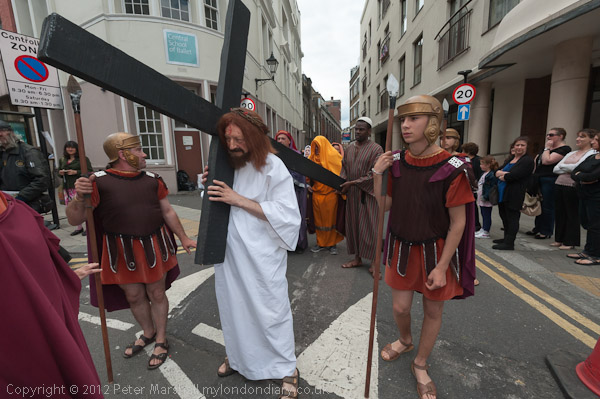 ![]() Some groups are waiting by the side of the road to join the procession ![]() ![]() ![]() ![]() Christ carrying the cross, flanked by Roman soldiers ![]() ![]() ![]() |