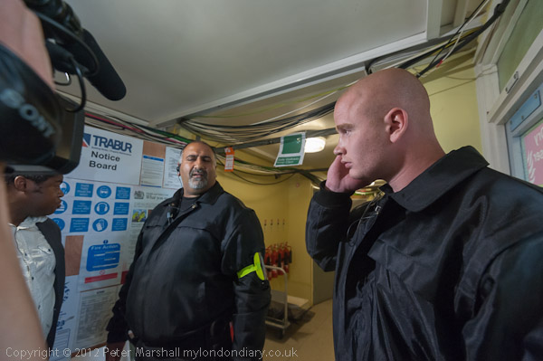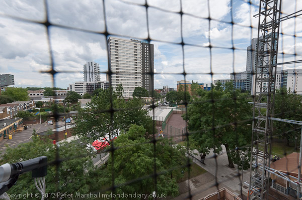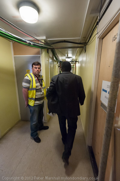 ![]() Then we move out a little into the corridor. ![]() Security continue to block our passage ![]() This is a residential area where people still live, despite the cables and poles ![]() But finally Warren comes to confirm his invitation and we have to be allowed to walk along the corridor ![]() and are able to continue our tour continue with the Carpenters Estate tour |