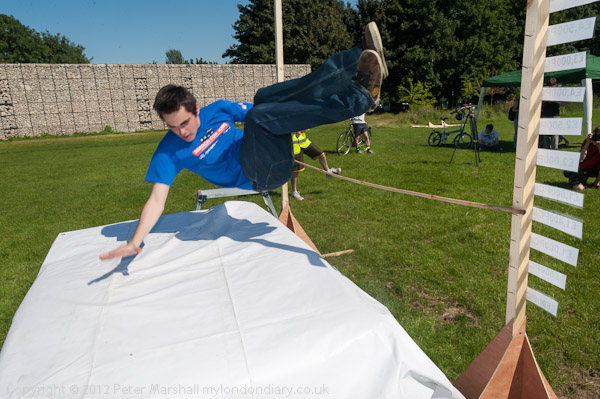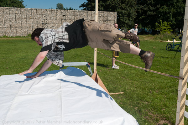When the bar was raised a couple of helpers lifted it for the banker and replaced it after his 'jump'