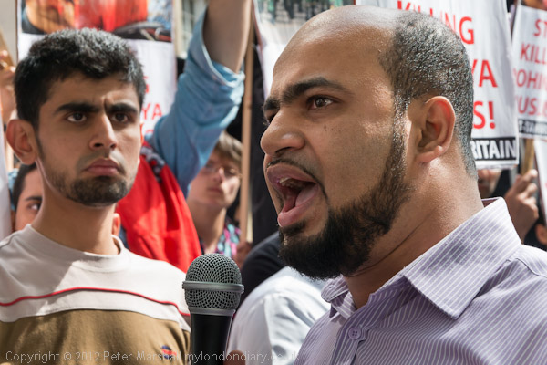 The protest today was outside the Bangladesh High Commission, and Bangladesh has a roughly 90% Muslim population. Formed out of British India at Partition in 1947 as a Muslim state of East Pakistan, after it gained independence in 1971 adopted in 1972 a secular democratic constitution. The secular principle was contradicted by a presidential decree when the country was under martial law in 1975-7 but was restored in 2010 under the current Prime Minister Sheikh Hasina, who was featured on a number of the placards at the protest for her government's actions against the Rohingya.