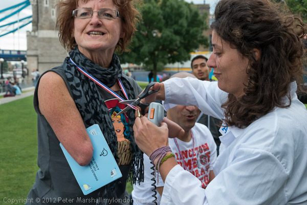 After all the winners had got up onto the podium and been awarded their medals, they were then each assessed by the 'Atos doctor' present. She asked them to spell 'DLA' and when they got it right told them that they were not disabled enough to keep their medals, which she then cut off with large scissors.