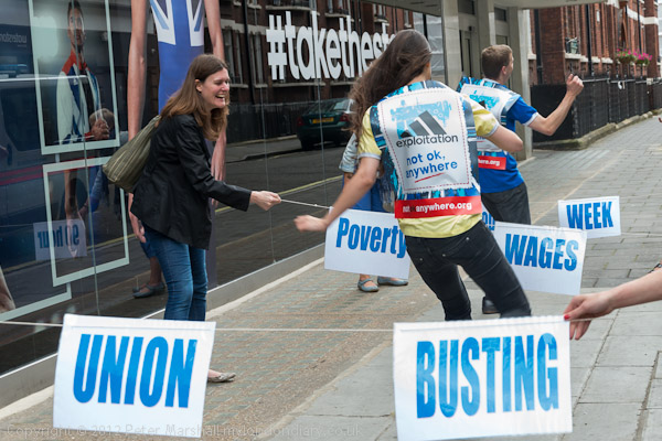 War on Want accuses Adidas of ignoring the union busing, poverty wages and 90 hour weeks of some of its suppliers