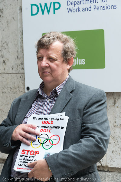 The protest is against the Dept of Work and Pensions and their plans to close Remploy factories