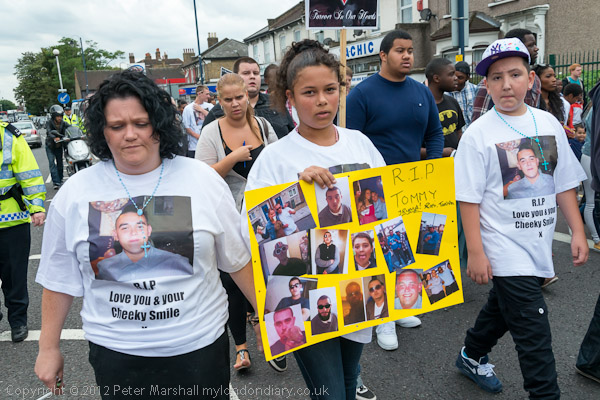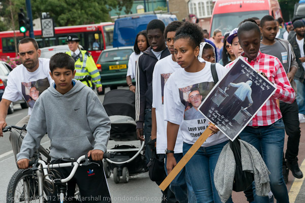 CJ's mother was in the car, and one of the march organisers walking alongside it
