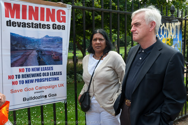 A Goa campaigner with placard 'Don't sell India's people for Anil Agarwal's Profits!'