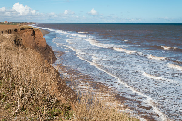 The path on our map was around the middle of the picture under the waves. The mud cliffs are being eroded