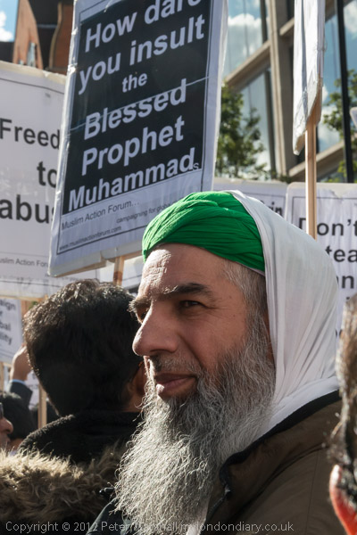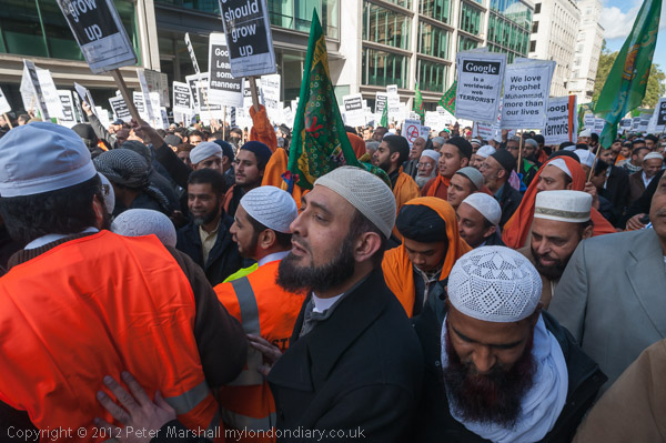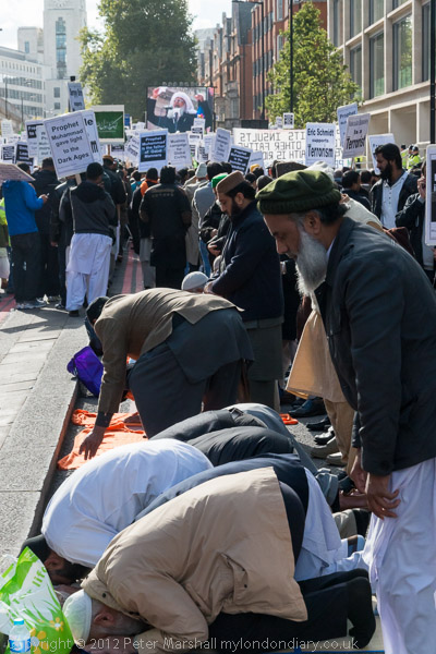 I had thought there were no women at the protest, but then saw this block beyond where the men were saying prayers