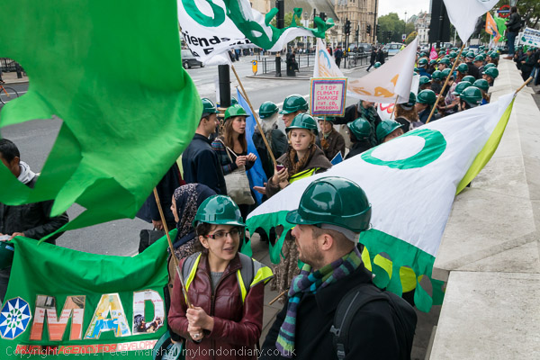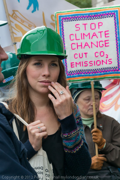 I had to ask this woman with a Friends of the Earth flag to stay where she was so I could take her picture
