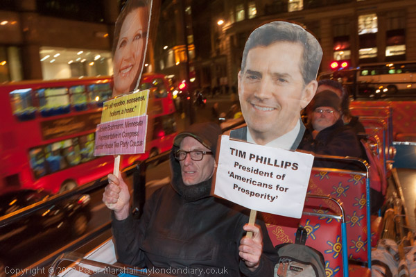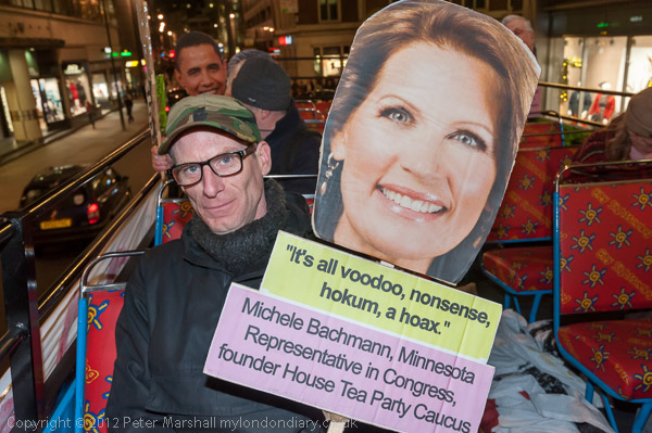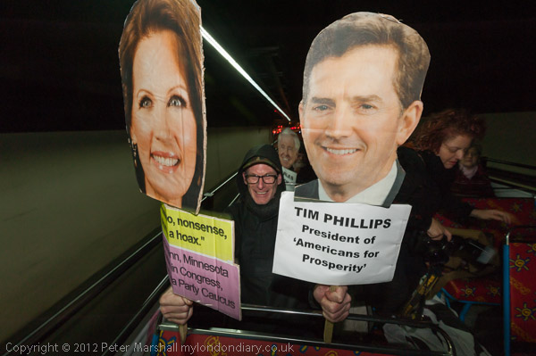 Rush Limbaugh and Paul Ryan with protesters on the top of the bus