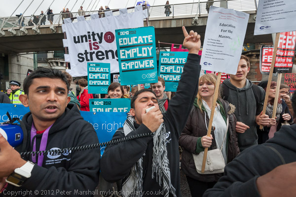 Overseas sutdents from London Met marching along the embankment