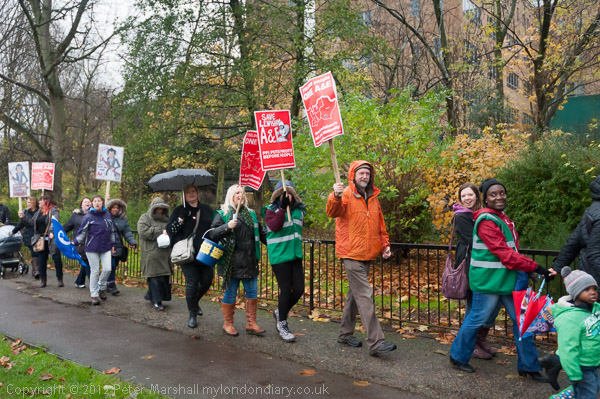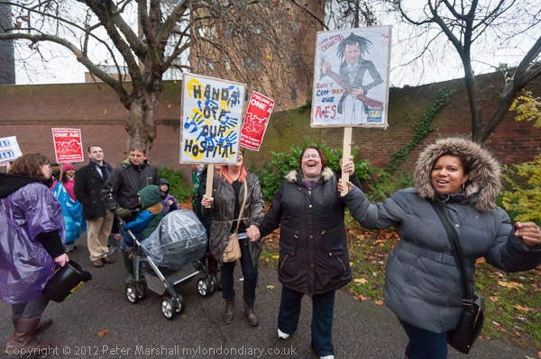 Hospital staff lead the way as protesters start to form a human chain around the extensive hospital site
