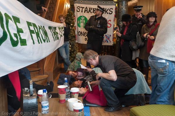 At Vigo St I could only photograph the occupied Starbucks through the windows
