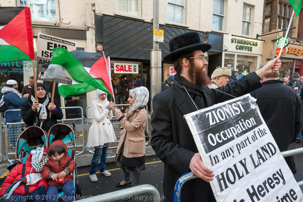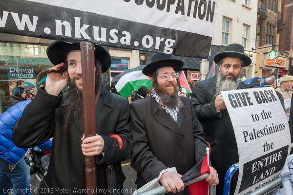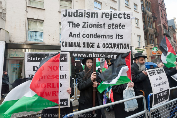 The Orthodox Neturei Karta to whom Zionism is a heresy were there to protest