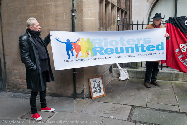 The Rioters Reunited banner which I photographed in Trafalgar Square on the 20th anniversary of the Poll Tax riot