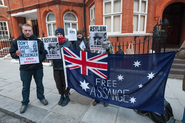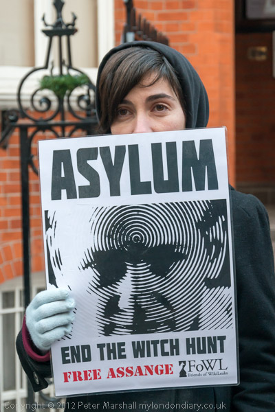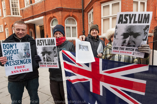 ![]() 'Free Assange! Free Manning! End the Wars' ![]() ![]() 'Don't shoot the messenger' 'Asylum - End the Witch Hunt' |