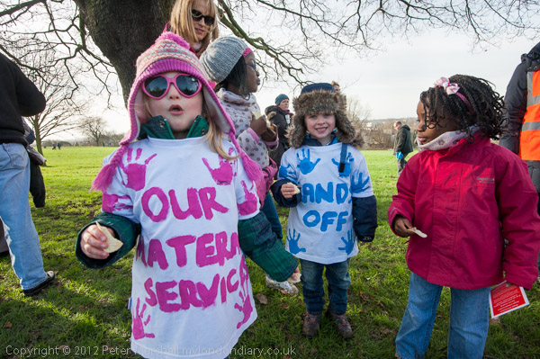 Her smock said 'Our Maternity services'. His said 'Hands off'