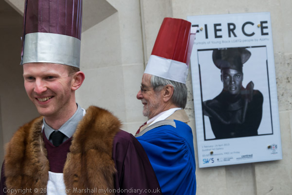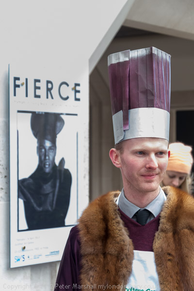 The poster for a show in the Guildhall gallery also has a rather odd hat