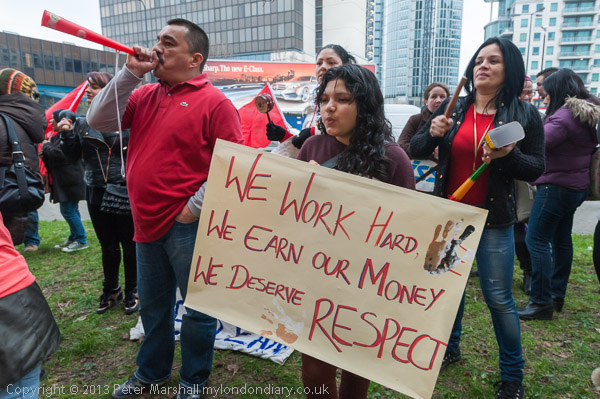 In a protest at the School of Oriental and African Studies, students and staff backed the cleaners demand to be employed directly and so get the same conditions as other SOAS staff, to be treated with respect and paid the London living wage.