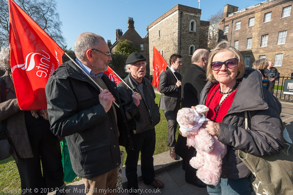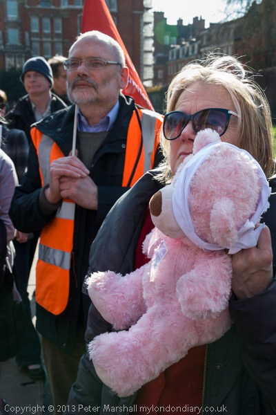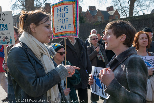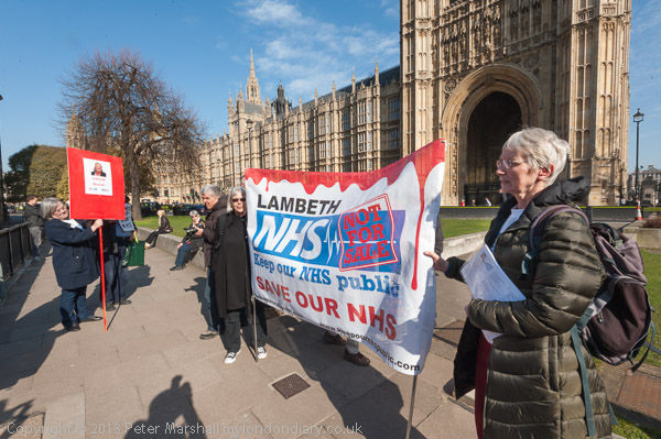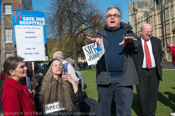Vampires from Ealing where the performed a mock funeral against hospital closure, names the companies who would profit