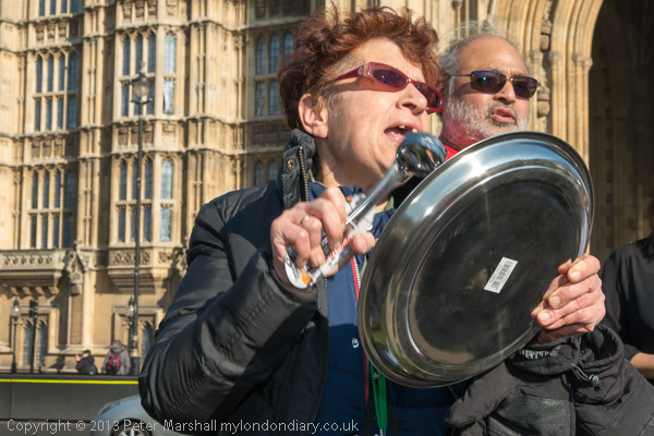 I didn't catch the name of the woman who led the protesters singing 'The Tory Boy's Picnic'