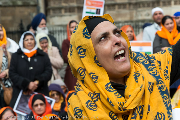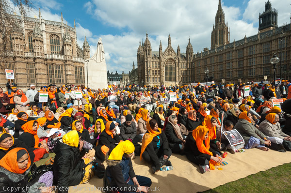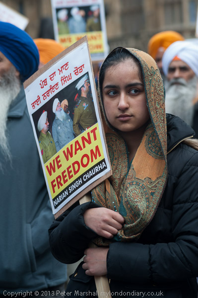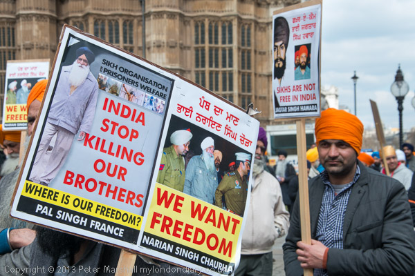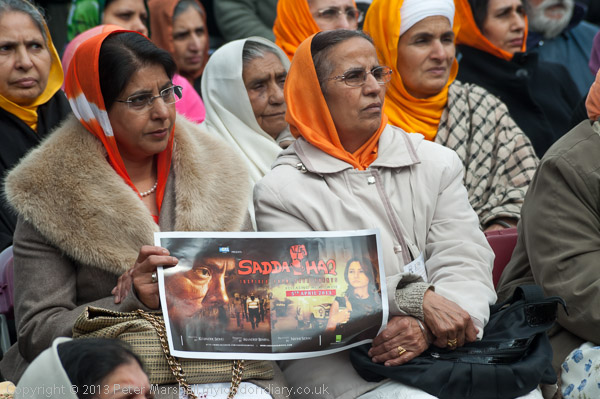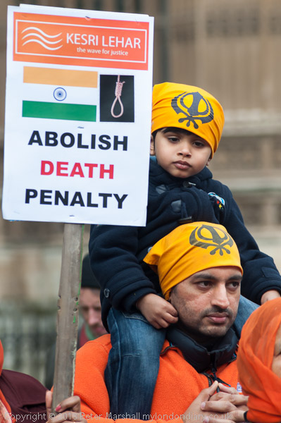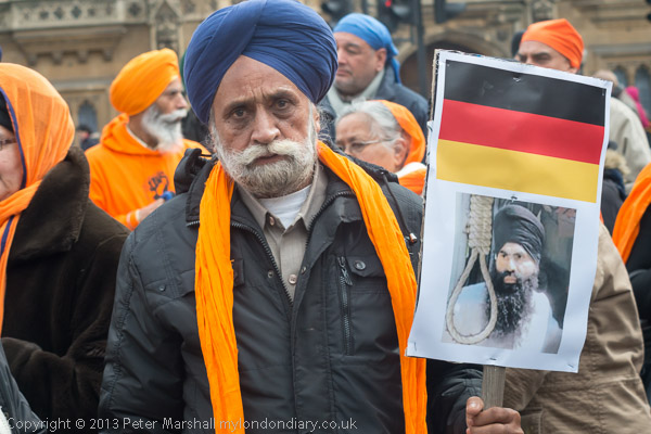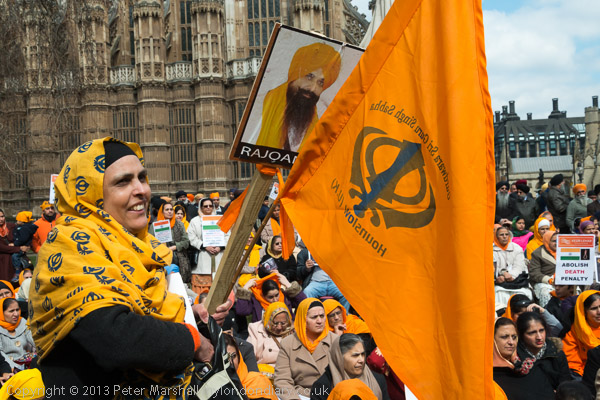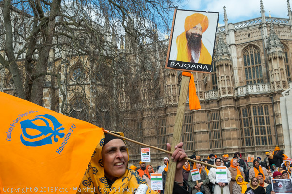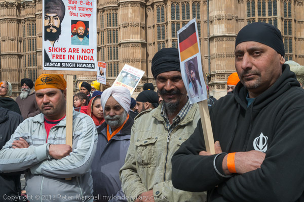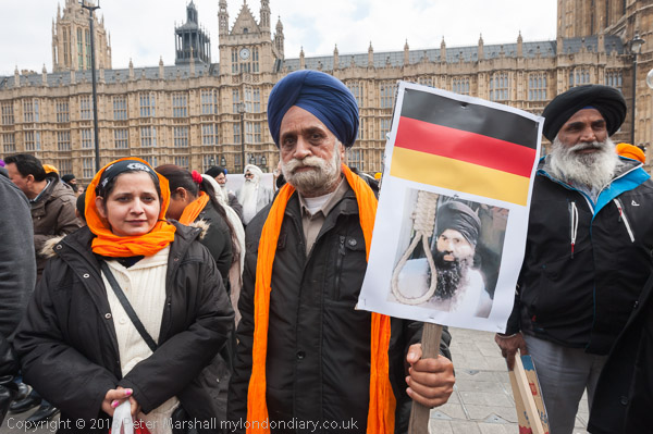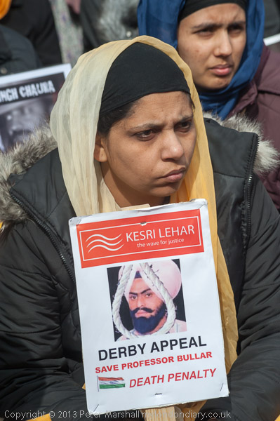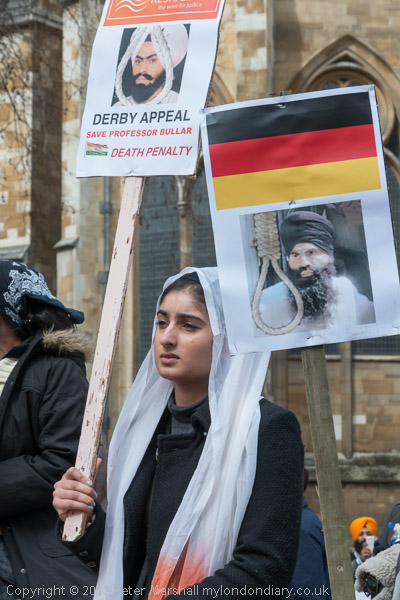 Sikhs from Derby with a poster about Professor Bullar, under threat of death