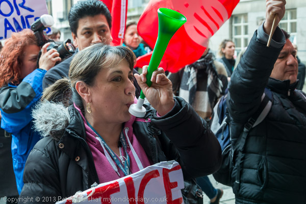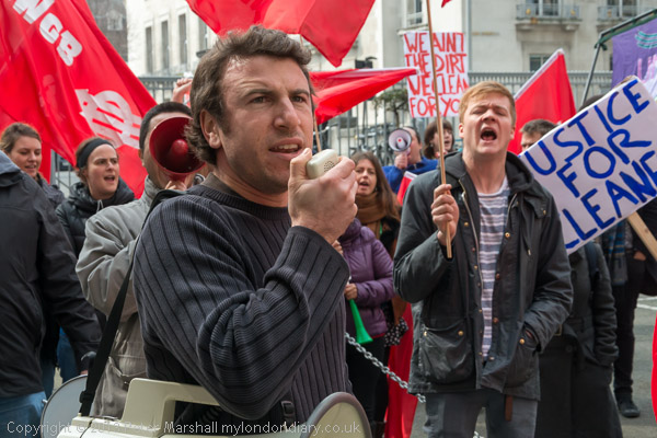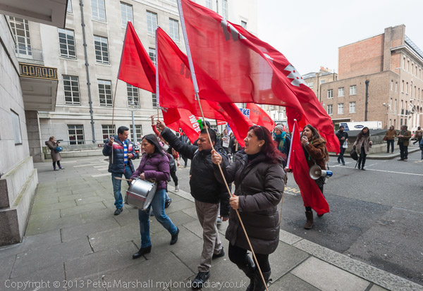 The protesters, many carrying IWGB flags walked towards the Senate House entrance