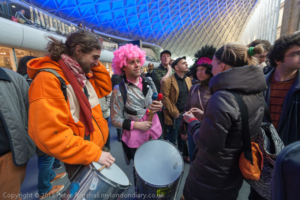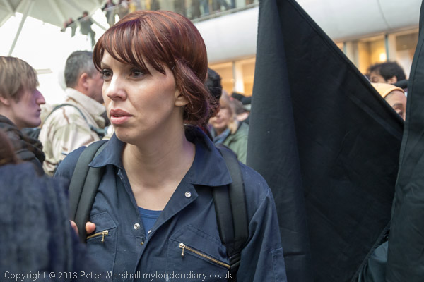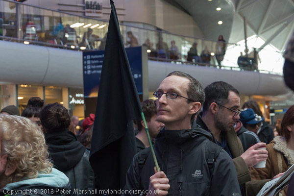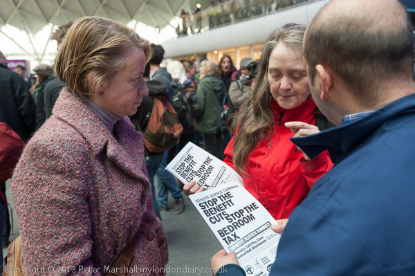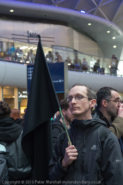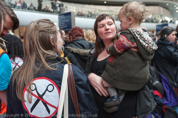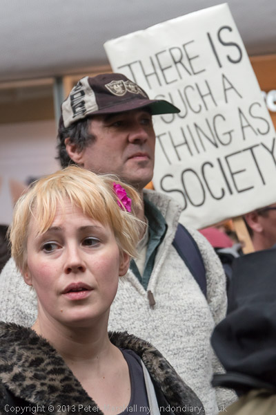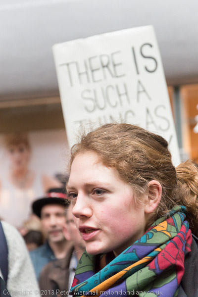 ![]() People gathered at Kings Cross station. Only the organisers (and apparently the police) knew where we were going ![]() ![]() 'There IS such a thing as society' ![]() There were a few black flags ![]() ![]() ![]() Green Party leader Natalie Bennett had come to take part in the protest ![]() and so had a street band |