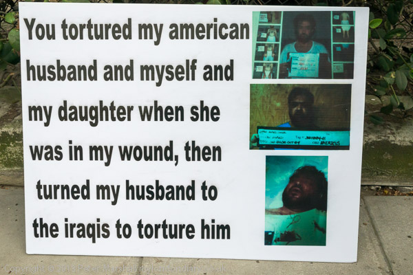 ![]() Narmeen Saleh Al Rubaye, wife of Shawki Ahmed Omar, and their 7 year old daughter in a vigil at the US Embassy ![]() ![]() |