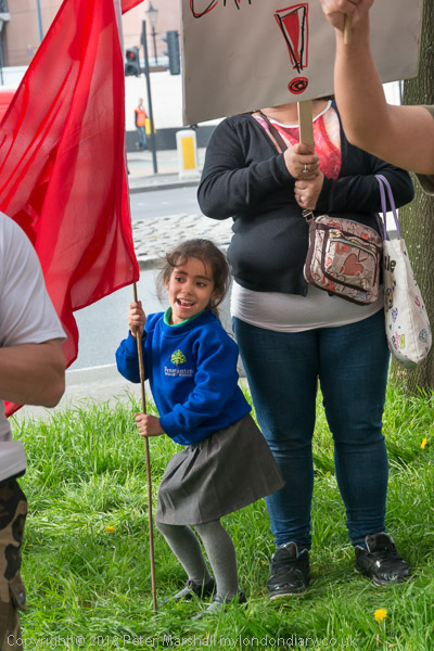 ![]() A man looks out of Capgemini at the protest ![]() There were some young protesters ![]() ![]() ![]() ![]() |