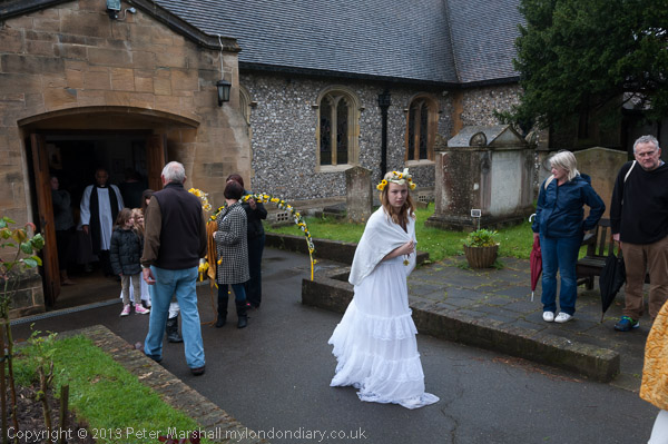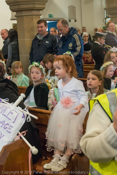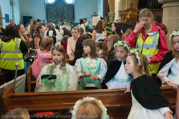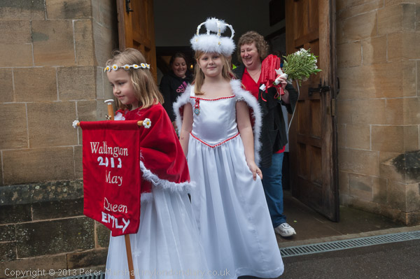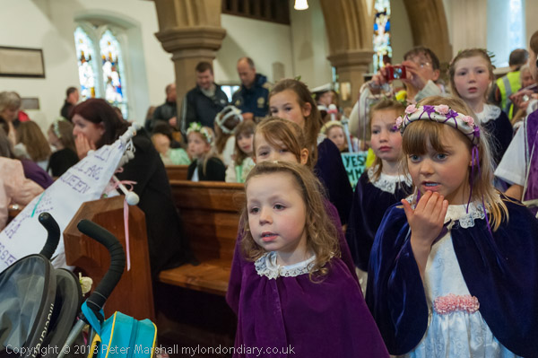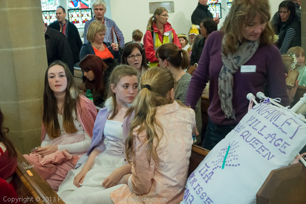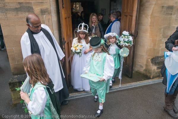 The Rector talks to the May Queen groups as they leave the church