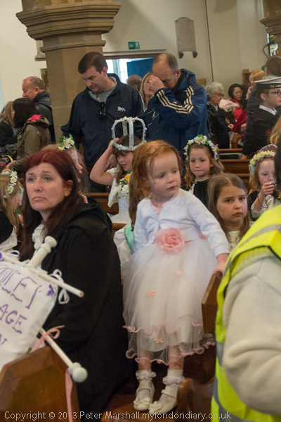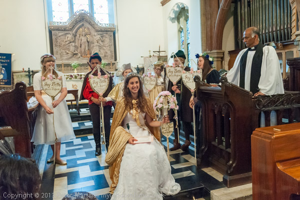 The Joy Bells standing behind the London May Queen in the parish church at Hayes