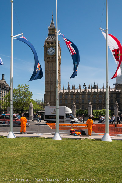 The vigil only needs one or two people in orange suits to stand out and remind MPs of the need for action. Today there were three when I was there.