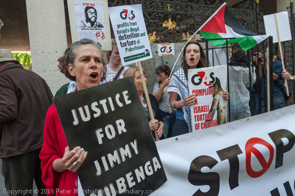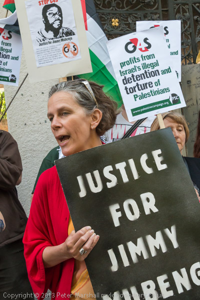 'G4S profits from Israel's illegal detention and torture of Palestinians ' - a PSC placard