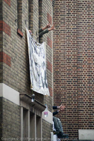 Some of those trapped in the 'convergence centre' squat came out to take pictures