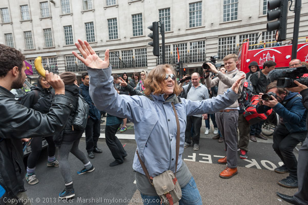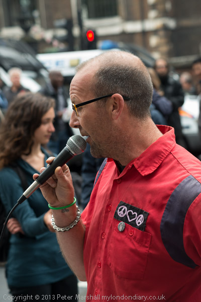 Reading the leaflet about " the offices of some of the most powerful and greedy " in London