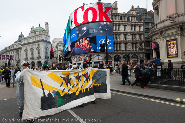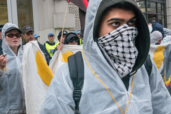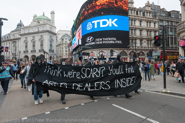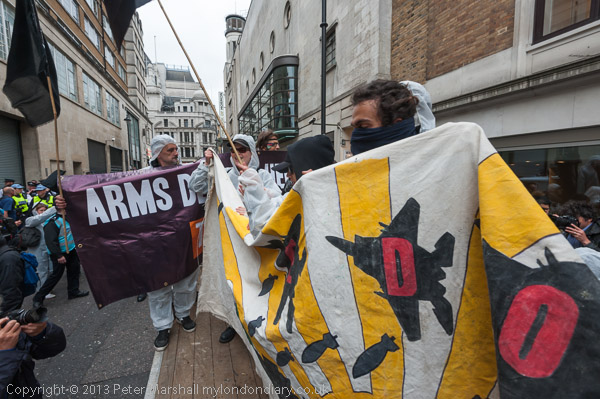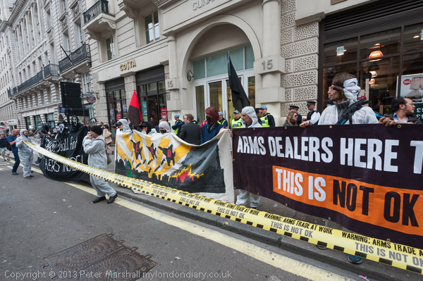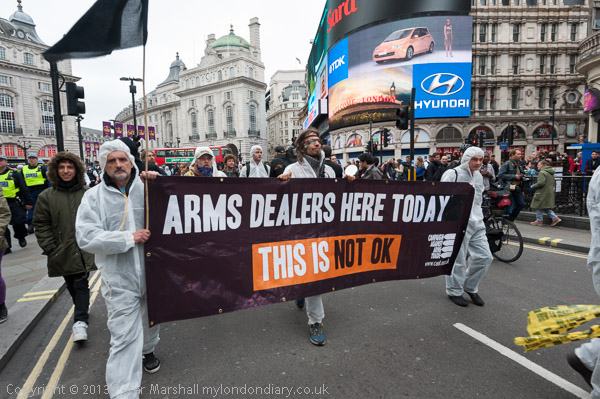 From Thales the protesters marched to Lockheed Martin UK on Lower Regent St