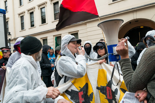 The final stop for more speeches was outside QinetiQ, just around the corner,