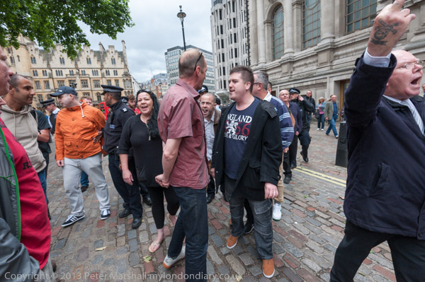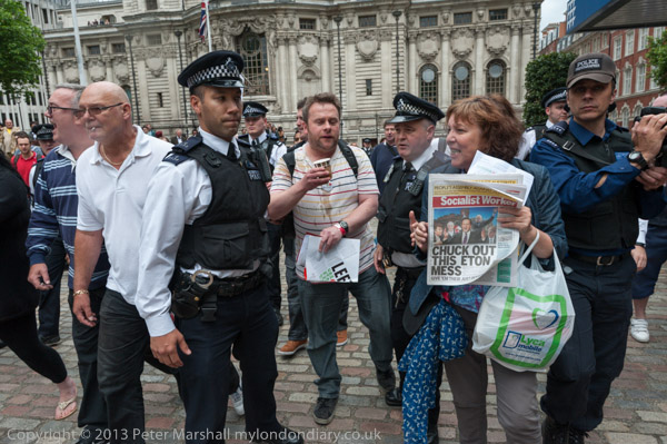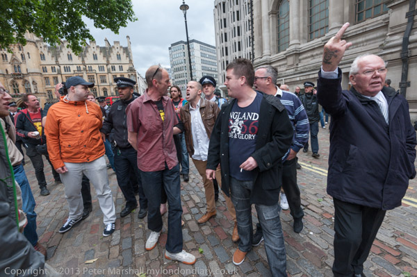 Some of the marchers made their way through, others stopped ot argue. They turned in front of the QEII centre