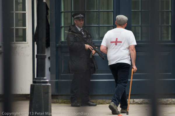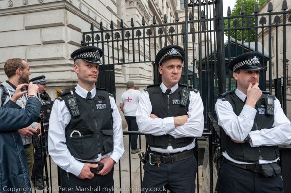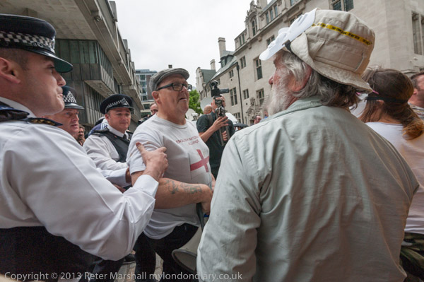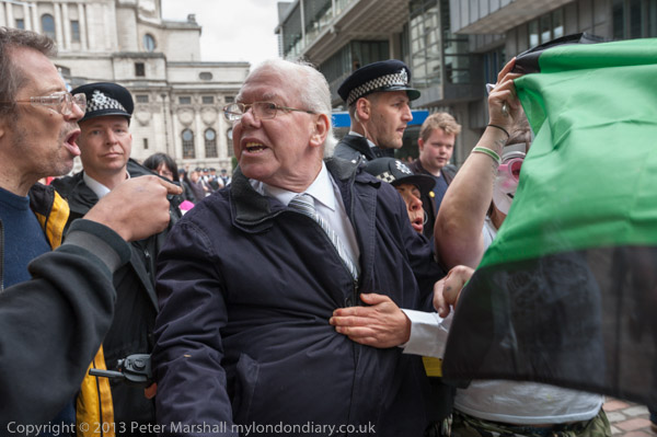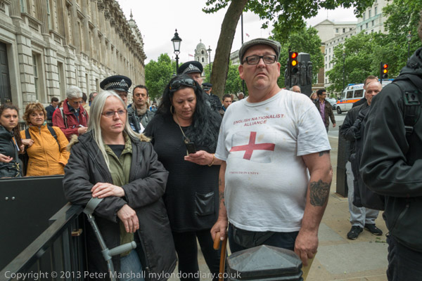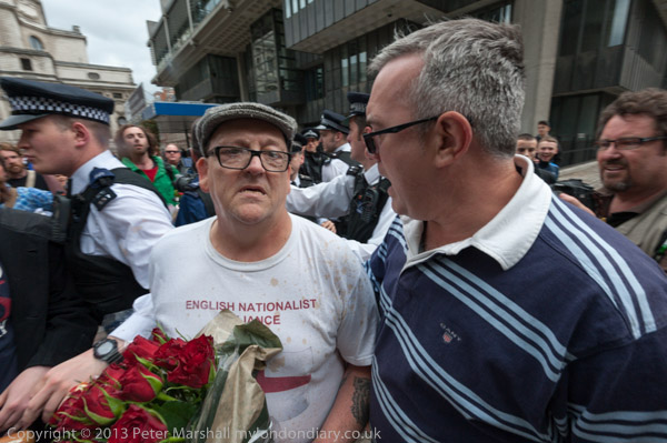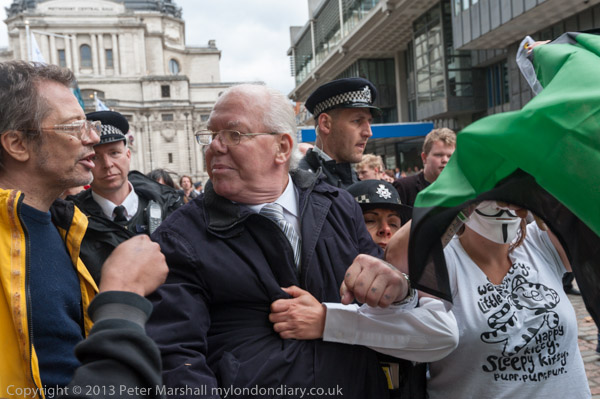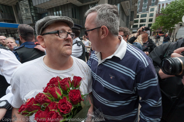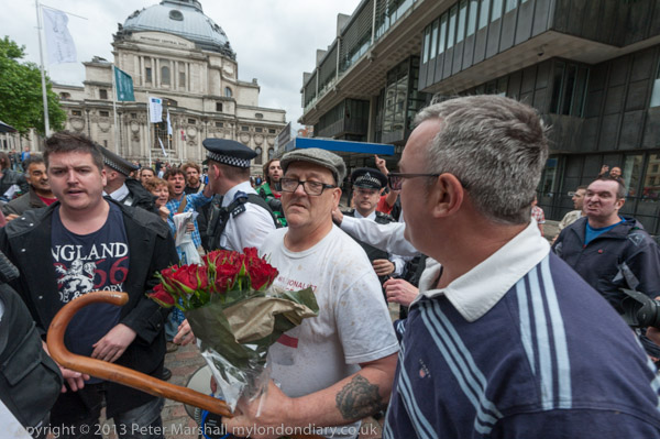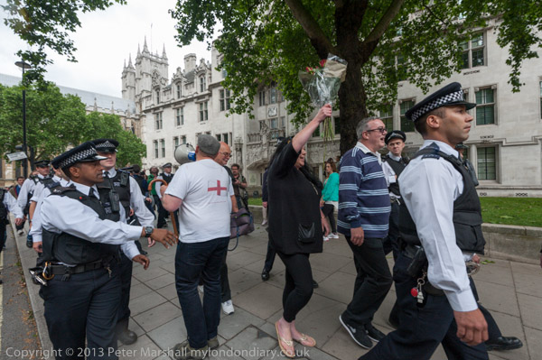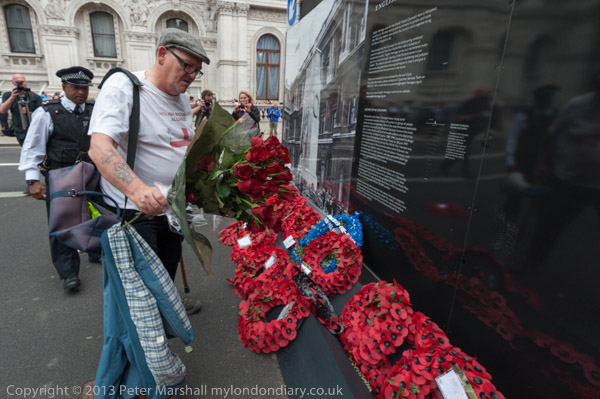 Bill Baker laid the flowers he had carried at the Cenotaph; again police kept the group moving