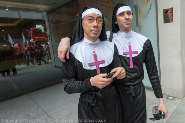 And Peter Tatchell is there too with his placard 'Vladimir Putin - Czar of homophobia'