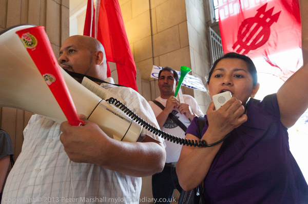 Several of the SOAS cleaners spoke at the protest; most are from Latin America and came to the UK because of persecution in their own countries, and most spoke in Spanish with a translator for those of us who needed it. There were also speakers from related campaigns, including the Birckbeck University cleaners, the '3Cosas' campaign and the IWGB who have also protested recently on behalf of low-paid workers at London University. Other speakers were from the University of London Union, the SOAS branch of the UCU, SOAS students union and other trade unionists and activists.