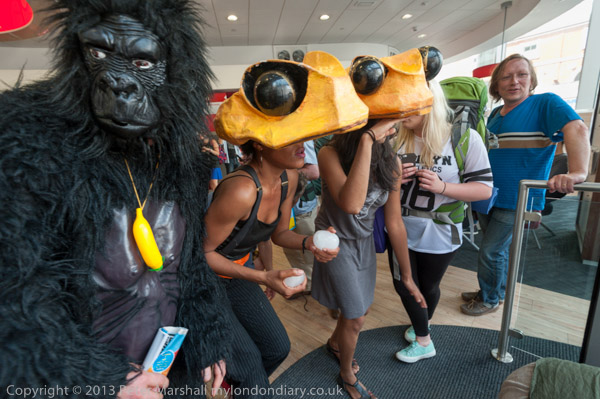The group met on the open space opposite Scotland Yard to prepare for the performance, with some preparing to take the role of three Central American species which have become extinct through climate change in recent years, an eagle, a monkey and a jaguar, learning to move appropriately and make suitable animal noises.