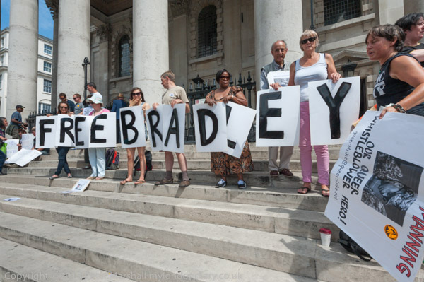 As a part of the international day of action the Bradley Manning Support Network held a vigil at St Martin-in-the-Fields on Trafalgar Square. A verdict is expected shortly but many see him as a hero who should be honoured rather than imprisoned.