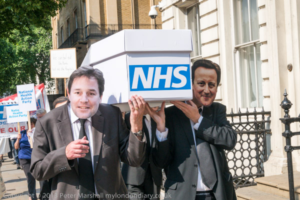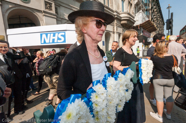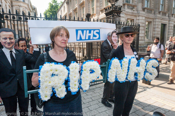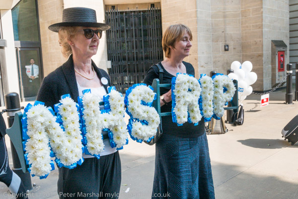 The funeral procession gets ready and then marches across the road to pose at Downing St